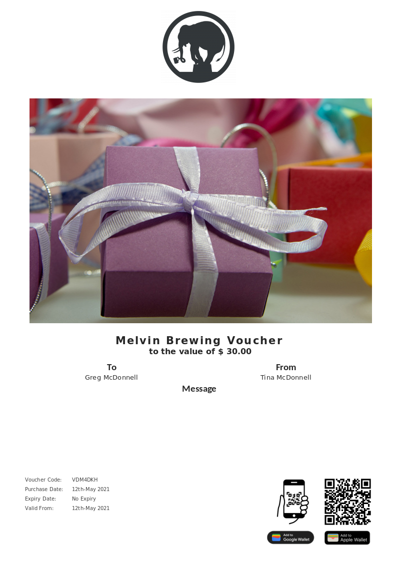 Melvin Brewing allows you to purchase instantly printable gift vouchers, special offers and tickets using the Voucher Connect platform.